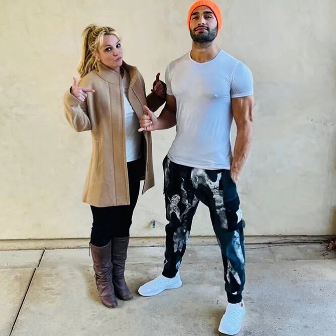 Поп-діва також поділилася яскравим знімком. Спірс позувала поруч з бойфрендом, 27-річним фітнес-тренером Семом Асгарі. Брітні одягла чорні обтягуючі брюки, світлий лонгслів і пісочне пальто. Вона доповнила образ коричневими чобітьми на підборах.