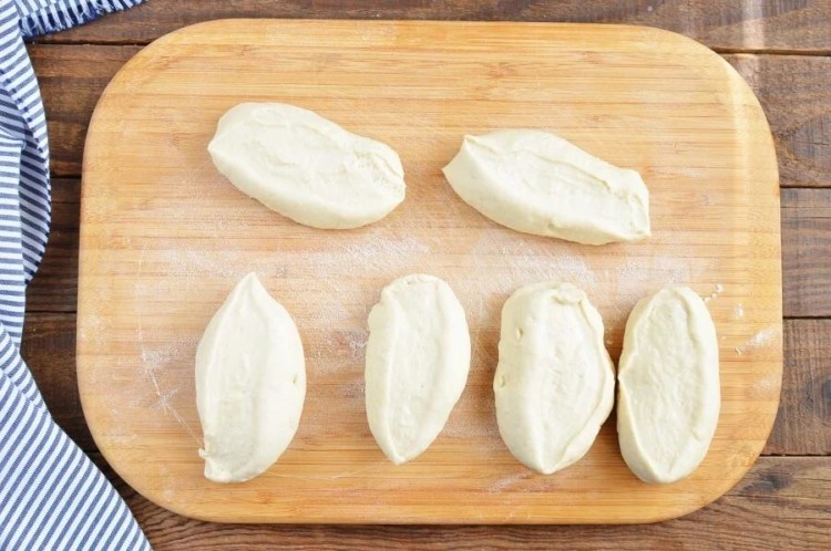 Його потрібно час від часу помішувати, щоб видаляти бульбашки. Потім тісто поміщають на дерев’яну дошку, посипану борошном. Ділять на шість фрагментів рівної величини.