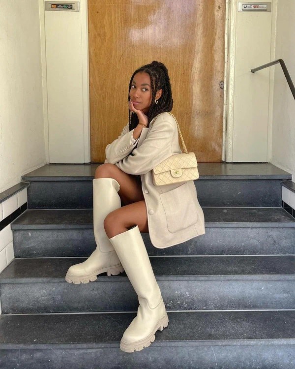 Для додаткового тепла та захисту спробуйте довші чоботи. Пухнасті ботфорти Miu Miu надихнули багатьох на створення подібних стилів, і, звичайно ж, Moon Boots – постійний лідер. Якщо ви хочете виглядати менш схожим на типові зимові черевики, спробуйте версії з гладкими логотипами Fendi та Balmain.