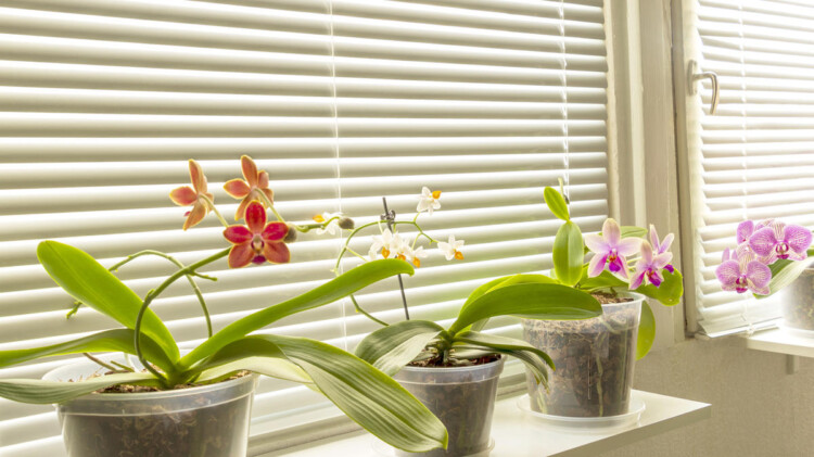 Для нормального росту і регулярного цвітіння орхідеї потрібний 10-годинний світловий день, причому незалежно від сезону. Ідеальне рішення – поставити рослину поблизу південного, південно-східного, південно-західного вікна. Але при цьому не можна допускати попадання полуденних прямих променів на листя орхідеї: це загрожує опіками. В цей час, особливо влітку, рослини потрібно притіняти. Як показує практика, зручніше за все регулювати освітленість підвіконня з орхідеєю за допомогою жалюзі. Це перевірений і дуже ефективний спосіб.