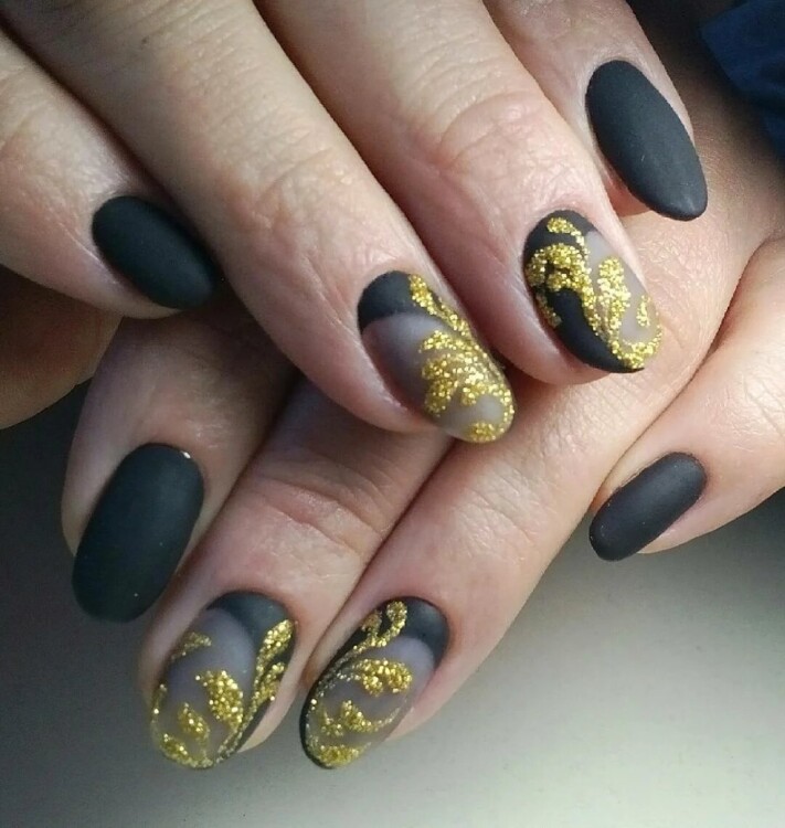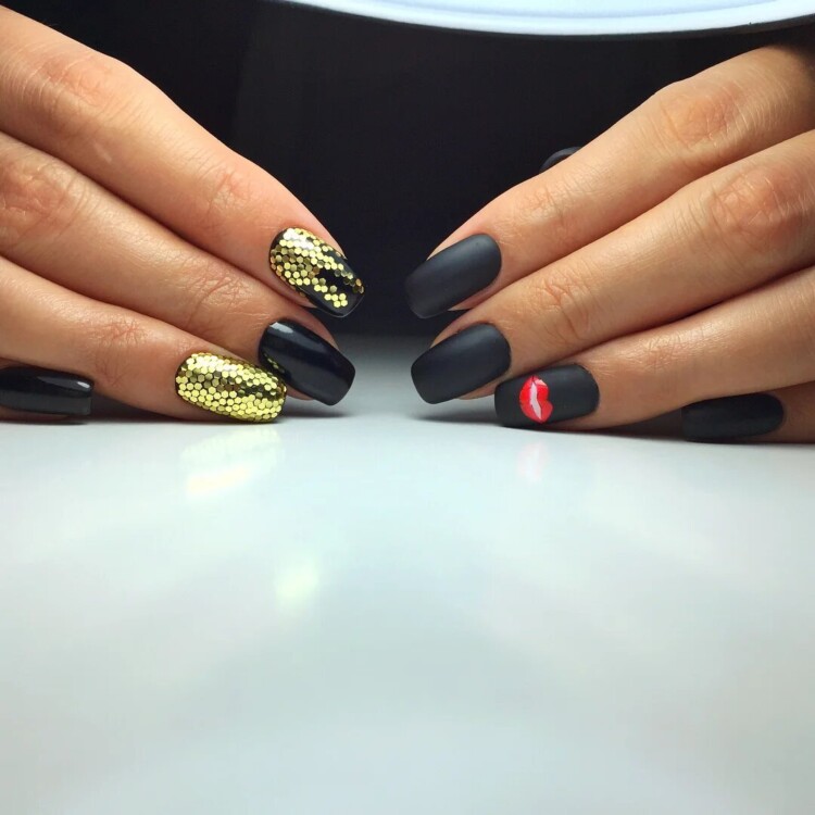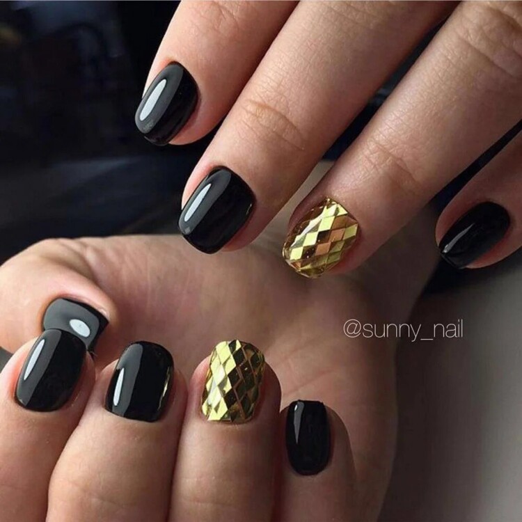 - однотонне покриття – ви самі вибираєте, який з нігтів покривається лаком чорного кольору, а який буде сяяти золотом;