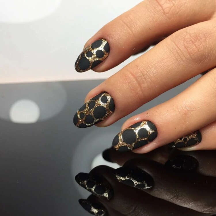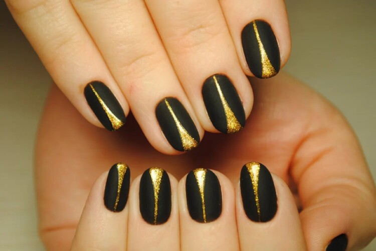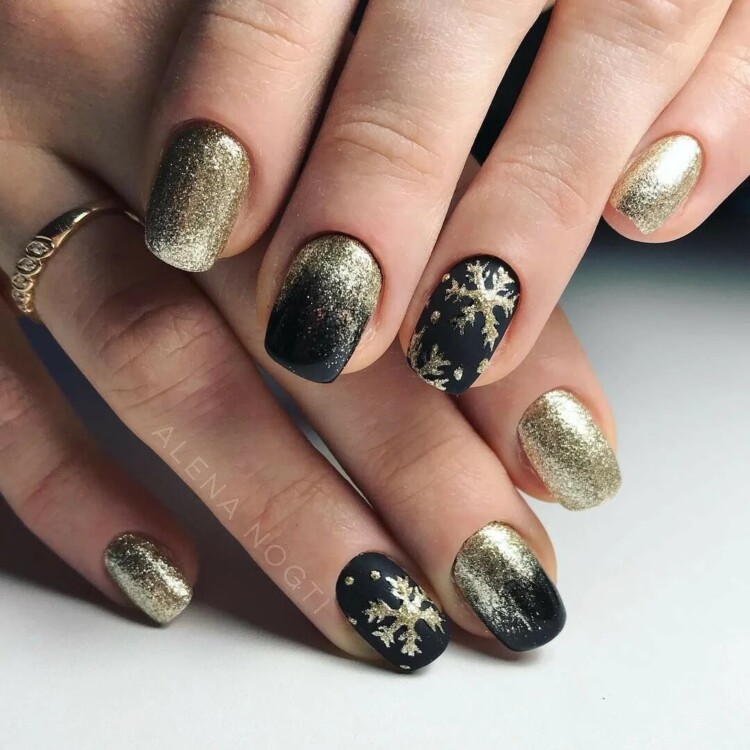 У зимовий час стає актуальним такий дизайн, як чорно-золотий – манікюр, що ідеально підходить для новорічних заходів.
