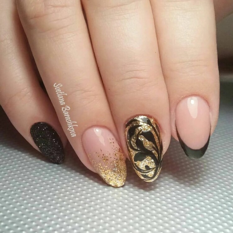 Чорно-золотий манікюр – ідеальний варіант для новорічної ночі