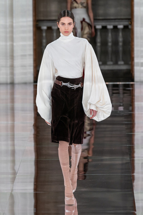 Окремо варто відзначити, звичайно, аксесуари – ремені з пряжками з посріблених, що тягнуться один до одного рук. Здається, що це просто зобов’язане бути частиною якоїсь колаборації з художником. Але інформації про це Бекхем і її команда поки що не публікувала, тому чекаємо подробиць і новин.