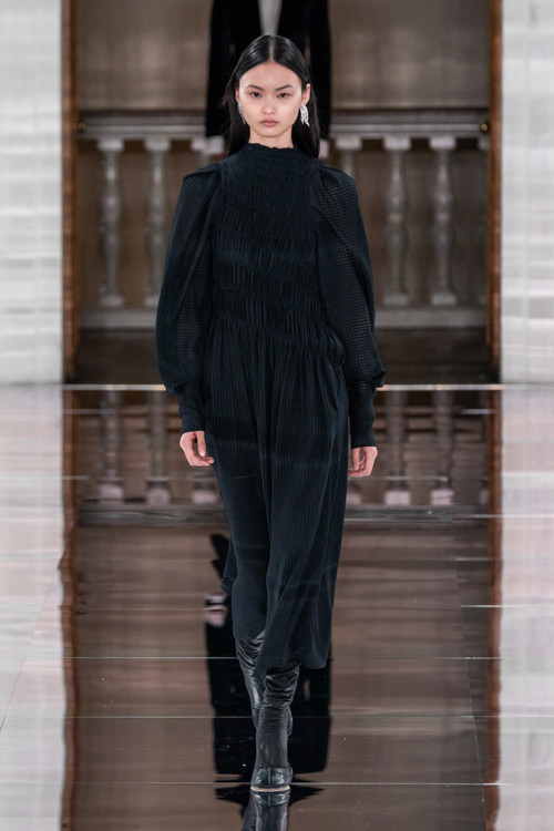 Чи змінилося що-небудь у новому сезоні, який Вікторія сама назвала часом оновлення, змішання традиційних кодів Будинку зі свіжими віяннями? Дух у колекції все той же. Єдине, що впадає в очі – це те, що цього разу Бекхем дозволила собі більше обсягу, не стримуючи себе строгою геометрією в конструюванні рукавів. Завдяки чому в силуетах суконь з’явилося щось з моди минулого, часів, скажімо, вікторіанських – і це додало колекції того самого повітря. А ще стали коротшими штани – тепер вони не закривають п’яту взуття, а відкривають щиколотки.