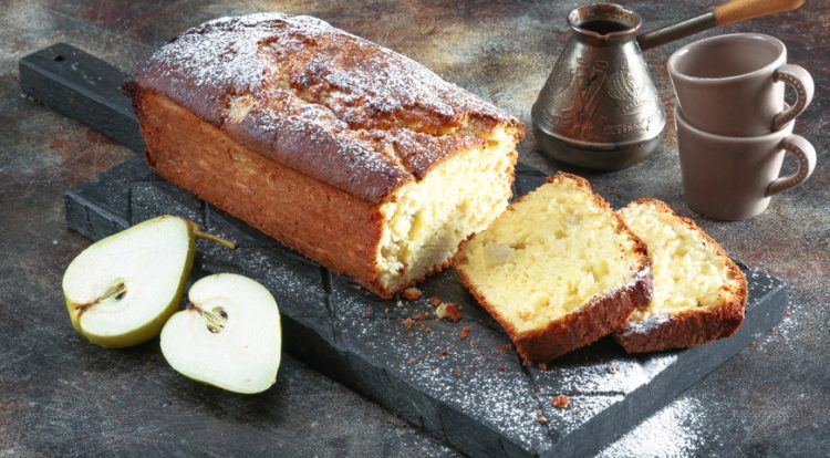 Грушу очищуємо від шкірки й нарізаємо кубиками. Додаємо до тіста та перемішуємо. Потім викладаємо його у підготовлену форму та відправляємо в духовку. Кекс випікаємо годину при температурі 180 градусів. Смачного!