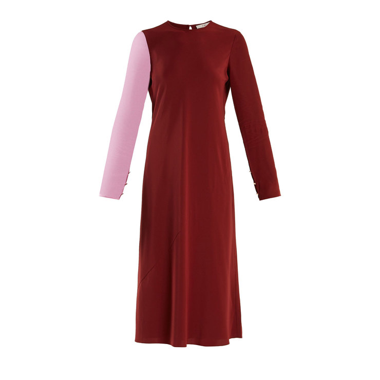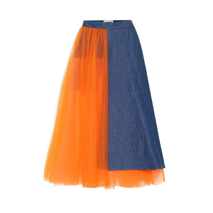 Головне правило – кольори повинні бути контрастними і помітно виділятися. Найчастіше це безпрограшна комбінація чорного і білого: темна футболка зі світлими рукавами, як у No. 21, чорний піджак з білими лацканами від Carolina Herrera або ж чорно-біла сукня, як у Gül Hürgel. Щоб зробити образ ще більш складним і цікавим, вибирайте не тільки відрізняючі кольори, але і матеріали.
