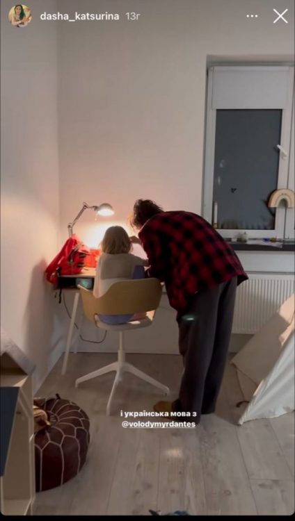 Ввечері її донька взялася виконувати домашнє завдання з української мови. Володимир Дантес допомагав дівчинці робити уроки. Співак пояснював Саші правила та показував, як правильно виконати завдання. “Українська мова з Володимиром Дантесом”, – підписала світлину Даша Кацуріна.