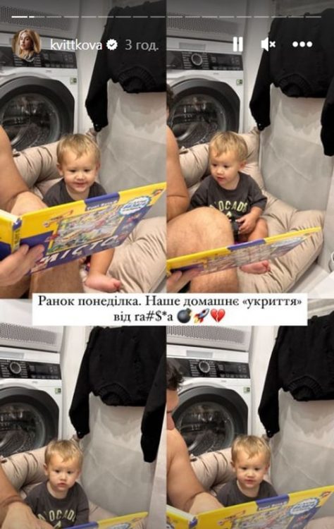В Instagram-stories Даша Квіткова показала, де саме ховається з однорічним сином. Як виявилось, блогерка облаштувала укриття у ванній. Вона принесла туди велику подушку, книжки, іграшки та планшет з мультиками для сина.