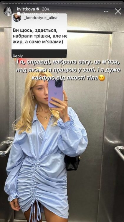 Даша Квіткова повідомила, що набрала вагу та показала, як наразі виглядає