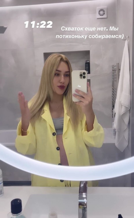 Блогерка заявила, що зовсім не хвилювалась. Вона була дуже спокійною та з нетерпінням чекала на омріяну зустріч з сином. Подружжя повернулось додому й почало збиратись в пологовий будинок. Даша Квіткова встигла прийняти душ та, навіть, зробила красиву укладку.