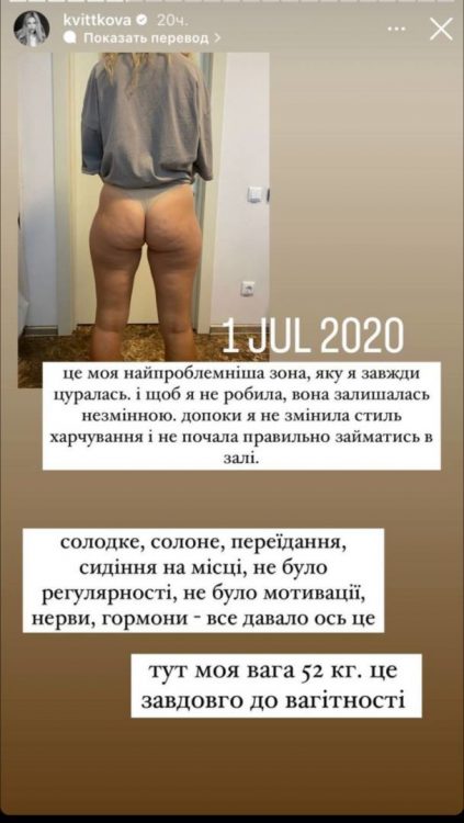 Відома блогерка Даша Квіткова завжди відверта зі своїми підписниками. Вона не соромиться показувати себе до схуднення й часто ділиться різними секретами ідеальної фігури. На цей раз Даша Квіткова вперше продемонструвала целюліт на своїх сідницях. В Instagram-stories блогерка поділилась кадром, який був зроблений задовго до вагітності.