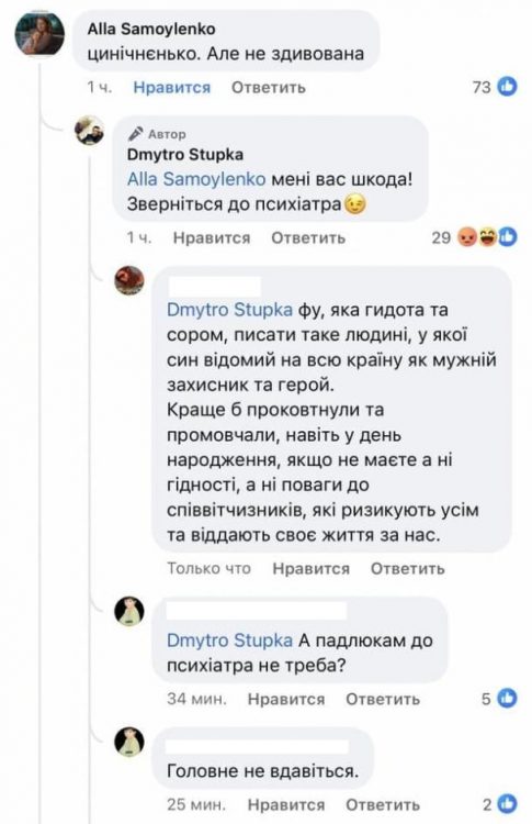 Дмитро Ступка образив маму захисника “Азовсталі” та нарвався на критику