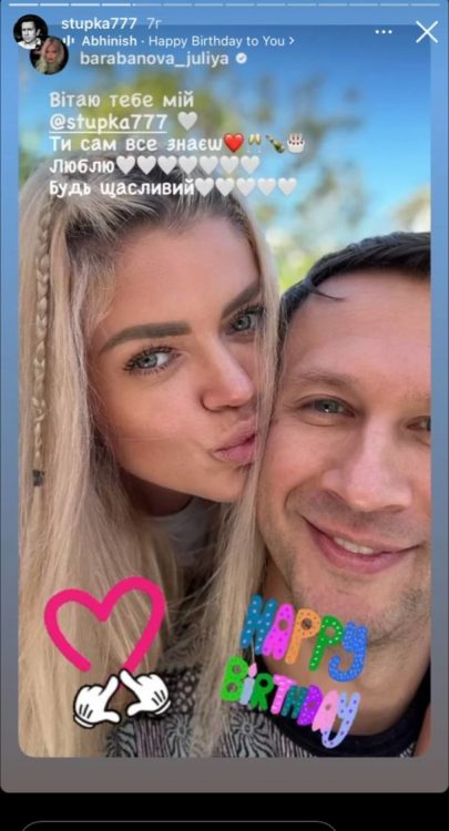 Нещодавно Дмитро Ступка відсвяткував день народження. Йому виповнилось 37 років. В день народження чоловік поділився новим кадром зі своєю обраницею. Юлія Калабішка публічно привітала коханого з 37-річчям. В Instagram-stories вона опублікувала романтичну світлину з актором. Перед камерою пара постала в обіймах.