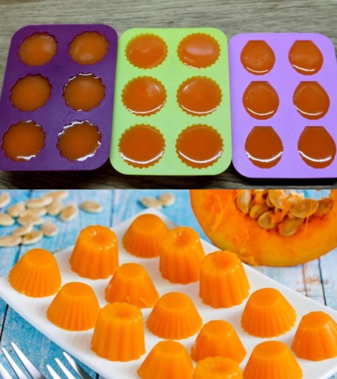Гарячу масу відразу ж перелийте в силіконові формочки, дайте охолонути при кімнатній температурі, потім поставте в холодильник. Через 15-20 хвилин гарбузовий мармелад буде готовий.