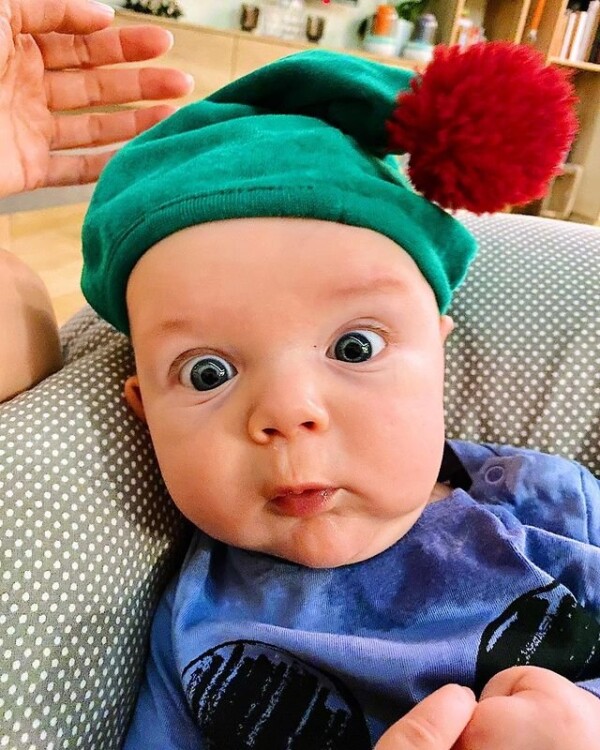 На честь цієї дати Христина Решетнік вирішила показати шанувальникам свого найменшого хлопчика та опублікувала у своєму Instagram його світлину. На фото Олександр позує в кумедній шапці зеленого кольору з червоним бомбоном, та здивовано дивиться у об’єктив.