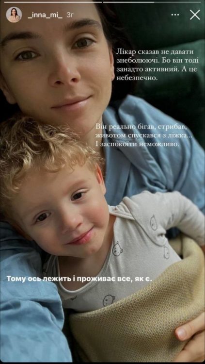 За словами жінки, їхній син почувається чудово. Також дружина шоумена відверто зізналась, що постійно хвилювалась за хлопчика. Жінка навіть пожартувала, що почувається так, ніби сама перенесла операцію. “Лікар сказав не давати знеболювальні, бо він тоді занадто активний, а це небезпечно. Він реально бігав, стрибав, животом спускався з ліжка…І заспокоїти неможливо. Тому ось лежить і проживає все, як є”, – заявила Інна Мірошниченко.