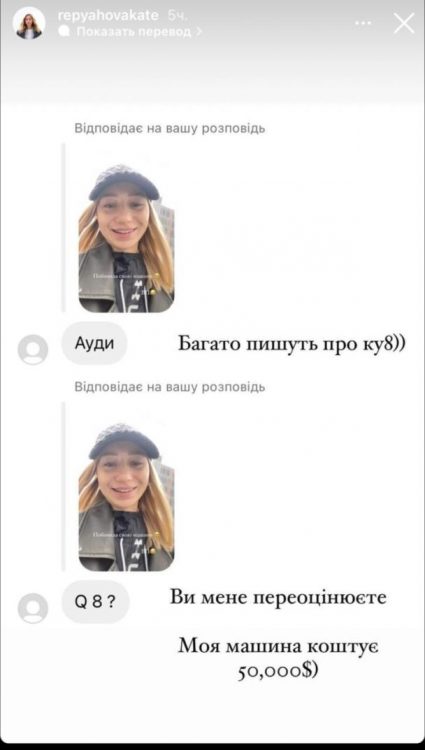 Вона не поспішає показувати придбане авто. Катерина Реп’яхова лише зізналась, що його вартість 50 тисяч доларів. Якщо цю суму перевести за нинішнім курсом у гривні, то це понад 1,8 мільйона. Юзери щиро пораділи за блогерку, привітавши її з такою чудовою покупкою. Також вони повідомили, що з нетерпінням чекають, коли Катерина Реп’яхова покаже своє нове авто.