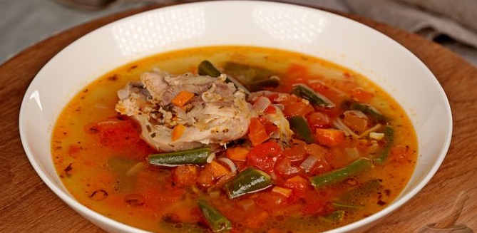Курячий суп з вермішеллю, помідорами та стручковою квасолею