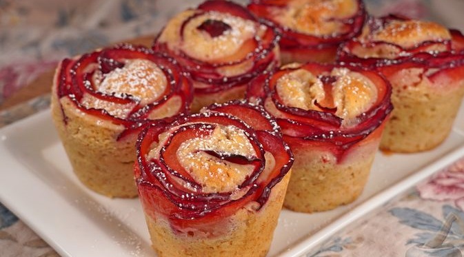 На вигляд мафіни нагадують трояндочки. Вони виходять дуже смачними, апетитними й ароматними. Мафіни зі сливами можна подавати до святкового столу, адже такий десерт сподобається всім гостям.