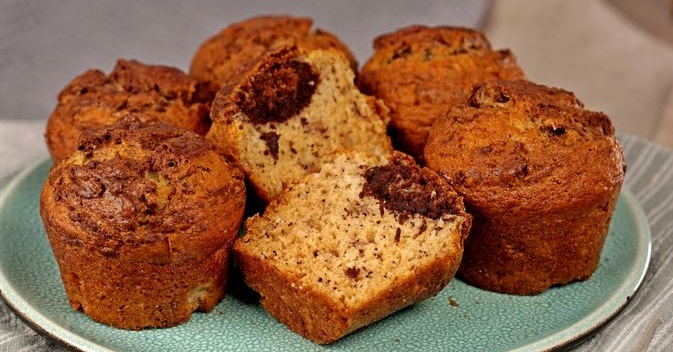 Такі мафіни дуже ароматні та смачні. Обов’язково приготуйте їх за цим рецептом. Бананові мафіни з шоколадно-горіховою пастою чудово смакуватимуть з гарячими напоями.