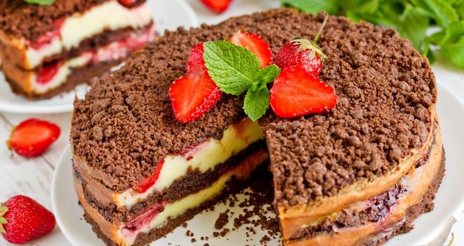 Такий десерт неодмінно Вам сподобається. Шоколадний пиріг з сиром та полуницею виходить ніжним на смак та просто тане в роті.