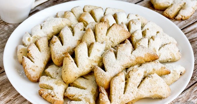 Додаємо їх до тіста та ретельно перемішуємо. Потім ділимо його на кульки та трохи розкочуємо. Робимо надрізи, формуючи оленячі ріжки. Потім печиво відправляємо в духовку та випікаємо 15 хвилин при температурі 180 градусів. Посипаємо пудрою та подаємо до столу. Смачного!