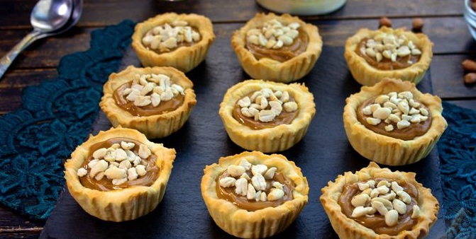 Пісочні тарталетки зі згущеним молоком та арахісом
