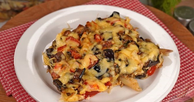 Запіканка з макаронів та баклажанів виходить не лише смачною, а й дуже ситною. Страва бюджетна та проста у приготуванні. До столу її подають в гарячому вигляді.