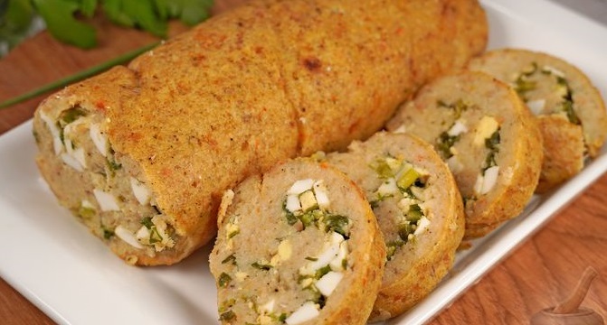 Ваші гості точно оцінять таку смакоту. Рибний рулет з яйцями та зеленою цибулею апетитний на вигляд та дуже ситний. Він швидкий у приготуванні й ароматний. Обов’язково подавайте таку страву до святкового столу.