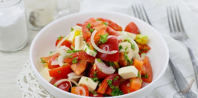 Салат з помідорами, болгарським перцем та плавленим сиром