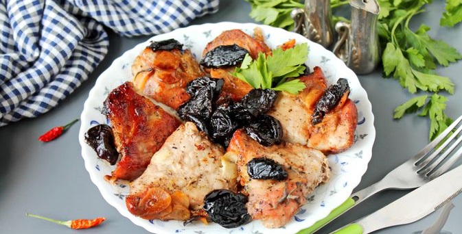Свинина, запечена з чорносливом та часником