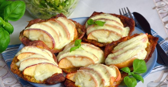 Свинячі відбивні з яблуками та моцарелою