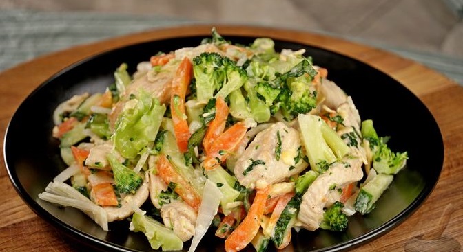 Салат виходить мегасмачним та ситним. Для його приготування знадобляться прості й бюджетні інгредієнти. Салатом з куркою, броколі, морквою, огірками та сиром можна сміливо пригощати гостей.