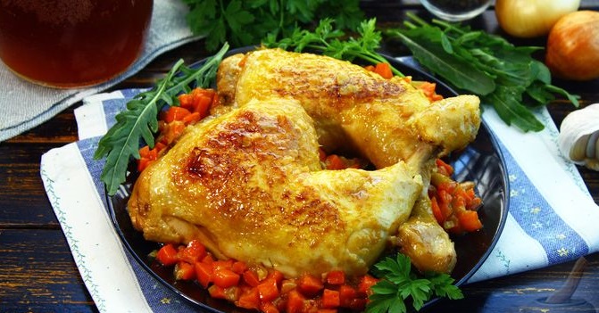 За цим рецептом тушкована курка виходить просто бездоганною. Вона готується швидко та легко. Страва чудово смакує в гарячому вигляді. Курка має апетитну скоринку та дуже ніжний смак.