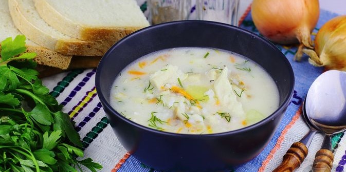 Рибний суп з плавленим сиром та рисом