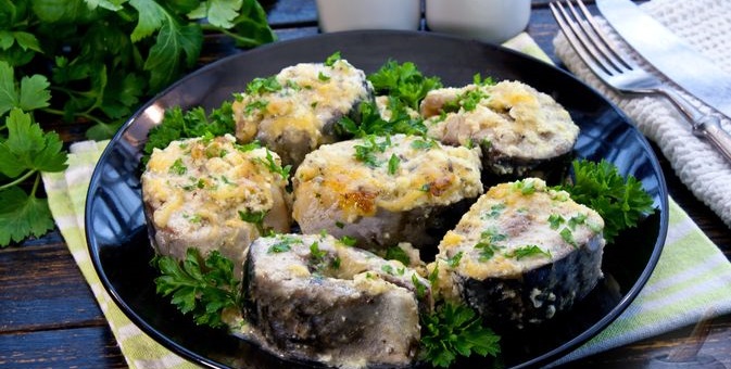 Скумбрія, запечена у сметанно-сирному соусі