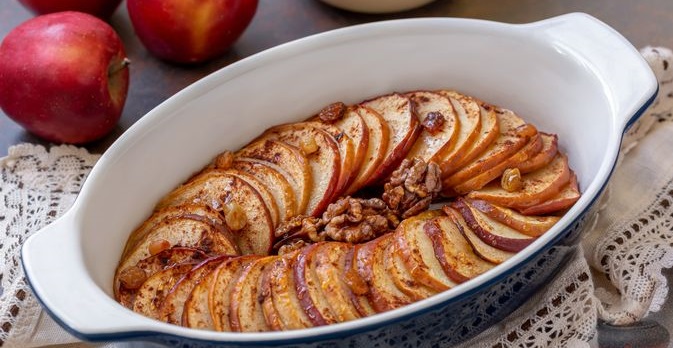 Яблука, запечені з горіхами, корицею, родзинками та медом