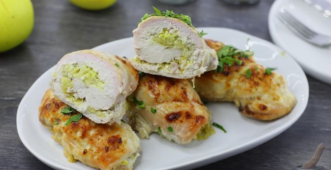 Страва дуже проста у приготуванні. Запечені рулетики мають ситну та смачну начинку. Вони чудово підходять до святкового столу. Також таку страву можна подавати на обід. Курячі рулетики з яблуками точно Вам сподобаються.