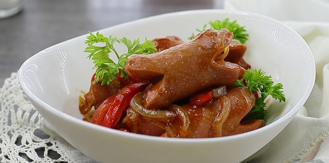 Сосиски з болгарським перцем у соєво-томатному соусі