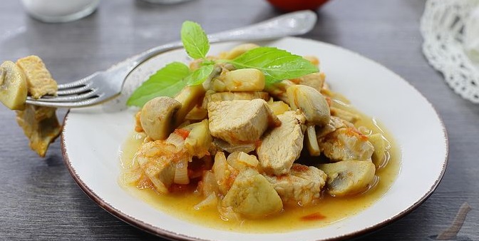 М’ясо виходить ніжним та дуже смачним. Індичка з грибами готується просто й швидко. Така страва чудово смакує в гарячому вигляді. Обов’язково приготуйте її для рідних.