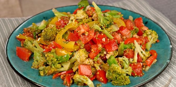 Салат з броколі, помідорами, болгарським перцем та горіхами