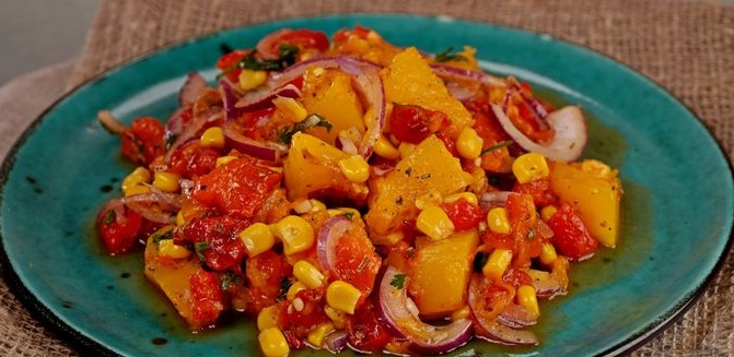 Салат із запеченим болгарським перцем, гарбузом та кукурудзою