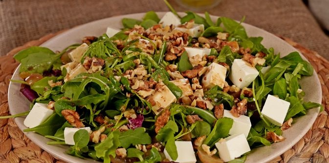В салаті ідеальне поєднання інгредієнтів, тому він виходить мегасмачним. Таку страву можна сміливо подавати до святкового столу. Салат з виноградом, фетою та горіхами точно сподобається Вашим гостям.