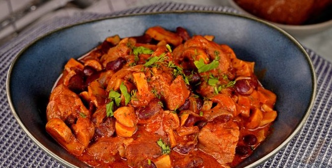 Тушкована свинина з грибами та квасолею