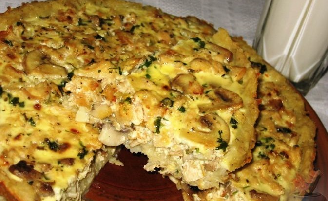 Картопляний пиріг з куркою та грибами