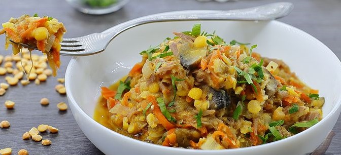 Каша виходить ніжною на смак, тому просто тане в роті. Вона готується швидко та складається з бюджетних інгредієнтів. Горохова каша з тушонкою та грибами точно сподобається Вашим рідним.