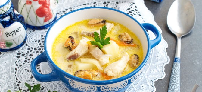 Такий суп виходить ситним, смачним та оригінальним. Якщо Ви полюбляєте морепродукти, то обов’язково збережіть цей рецепт. Страва має апетитний вигляд та дуже ніжний смак.