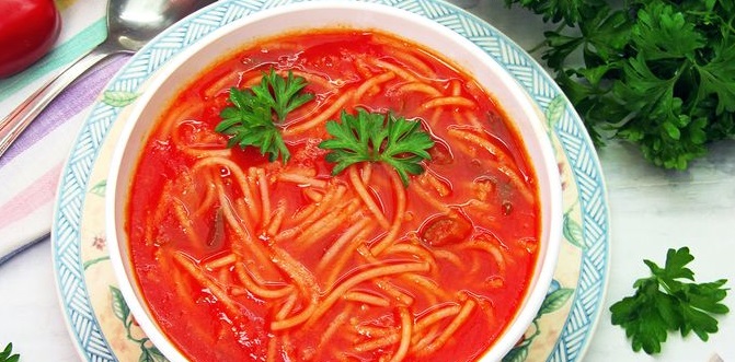 Суп нереально апетитний та смачний. Він готується дуже просто та швидко. Томатний суп з вермішеллю та зеленою цибулею точно Вам сподобається. Він дуже ніжний й ароматний.