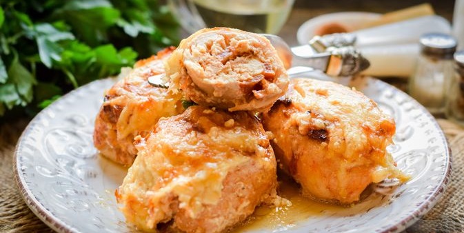 Страва має дуже апетитний вигляд. Курячі рулетики складаються з ситної начинки. Вони надзвичайно ніжні на смак й ароматні. М’ясні рулетики з помідорами та сиром подають до столу в гарячому вигляді.